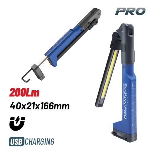 BORMANN Pro BPR6024 Φακός Εργασίας Επαναφορτιζόμενος 200Lm, 2 Λειτουργιών, Με Γάντζο Και Μαγνήτη,270..