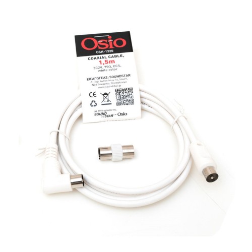 Ομοαξονικό καλώδιο κεραίας μήκους 1,5 μέτρων, 75 Ω. Ιδανικό για σύνδεση κεραίας σε αποκωδικοποιητ..