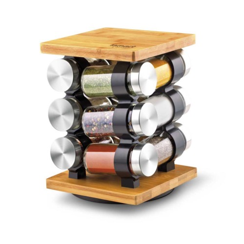 Lamart LT7010 σετ με 12 δοχεία για μπαχαρικά κουζίνας τοποθετημένο πάνω σε δίσκο μπαμπού που περιστρ..
