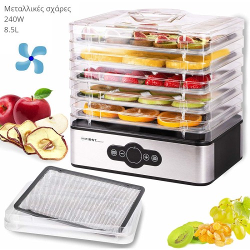 Αποξηραντής φαγητού First Austria FA-5126-6, 5 επιπέδων με ψηφιακό έλεγχο θερμοκρασίας, μεταλλικές σ..