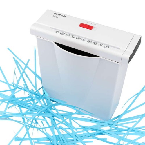 Καταστροφέας εγγράφων PS 36 σε λευκό χρώμα της Olympia. ► Με ατσάλινες λεπίδες και κάδο χωρητικότ..