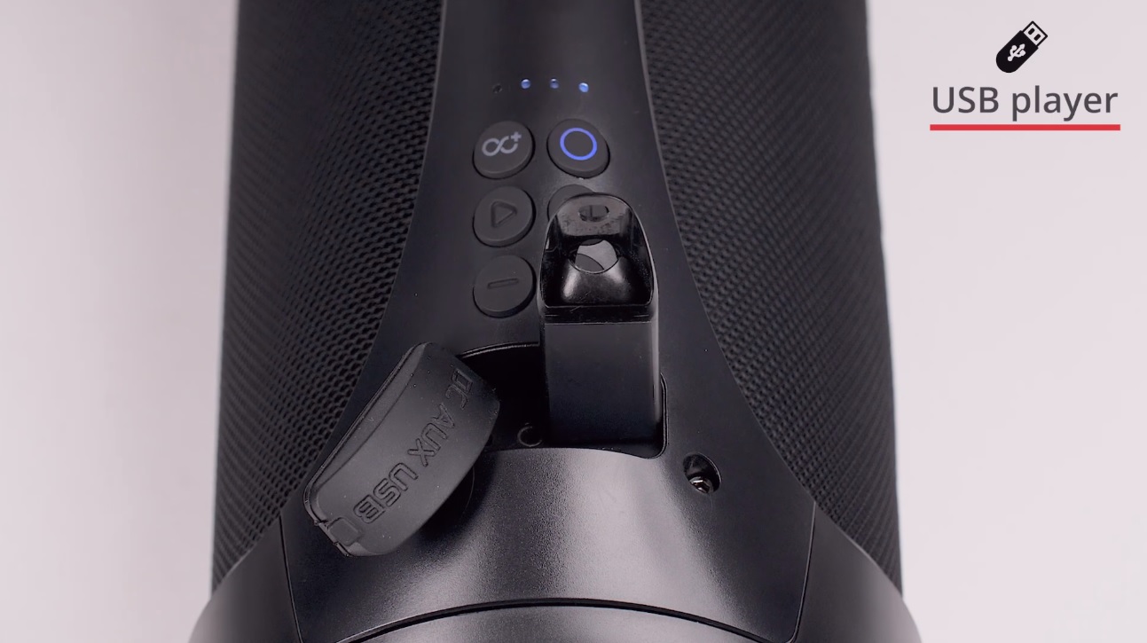 ► Πρόκειται για ένα φορητό ηχείο με χειρολαβή για εύκολη μεταφορά, το οποίο είναι ανθεκτικό στο νερό με πιστοποίηση IPX5 για να σε συνοδεύει άφοβα ακόμα και στην παραλία ή στην πισίνα, ενώ ο φωτισμός LED τραβάει όλα τα βλέμματα.