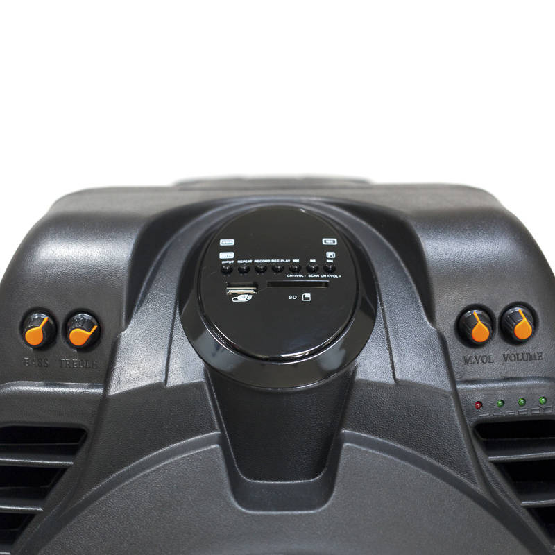 Δυνατό φορητό ηχείο με σύνδεση Bluetooth, ραδιόφωνο, ασύρματο μικρόφωνο, USB, AUX-In 3.5 mm και κάρτα SD. Είναι το ιδανικό και πιο ολοκληρωμένο ηχείο για κάθε περίσταση, από καραόκε και υπαίθριες συναυλίες και πάρτι μέχρι ταινίες και μουσική στο σπίτι!