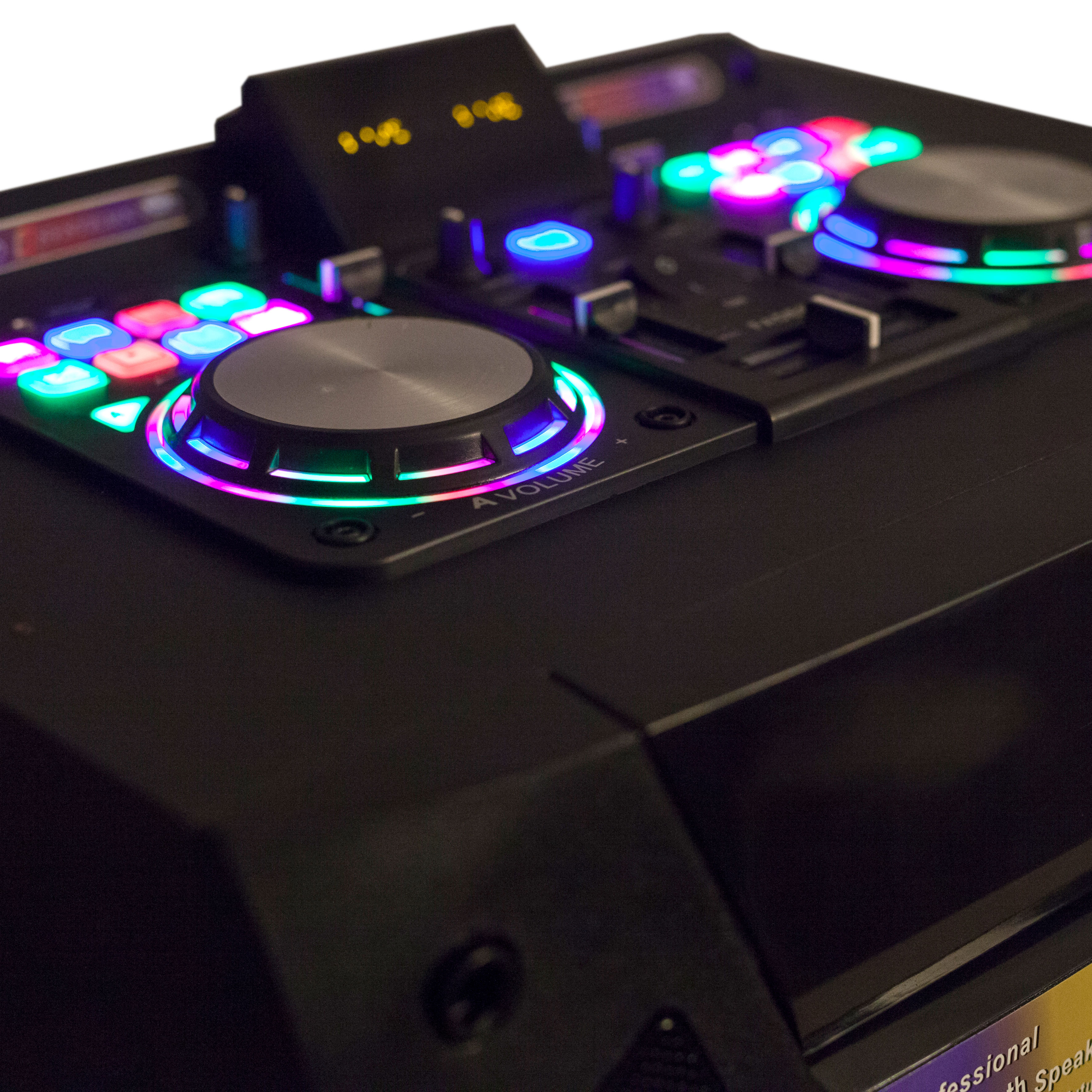 Συνδέεται με δύο πηγές ήχου, τις οποίες μπορείς να ελέγξεις ξεχωριστά, μέσω Bluetooth, AUX-IN, USB, κάρτας SD, ραδιοφώνου ή ενσύρματου μικροφώνου και με τον ενσωματωμένο μίκτη μπορείς να παίξεις μουσική όπως οι επαγγελματίες DJ’s!