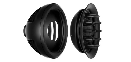 Ο αέρας διαχέεται απαλά μέσα από τις πιο μακριές προεξοχές για να φτάσει βαθύτερα στα μαλλιά, για καλοσχηματισμένες μπούκλες με όγκο και σγουρά μαλλιά.