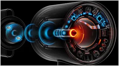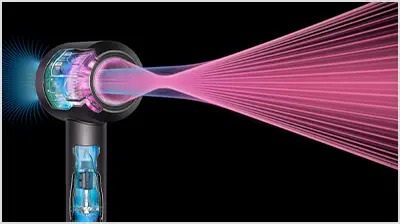 Το μικρό αλλά ισχυρό μοτέρ Dyson Hyperdymium™ δημιουργεί μία ροή ελεγχόμενου αέρα υψηλής ταχύτητας.