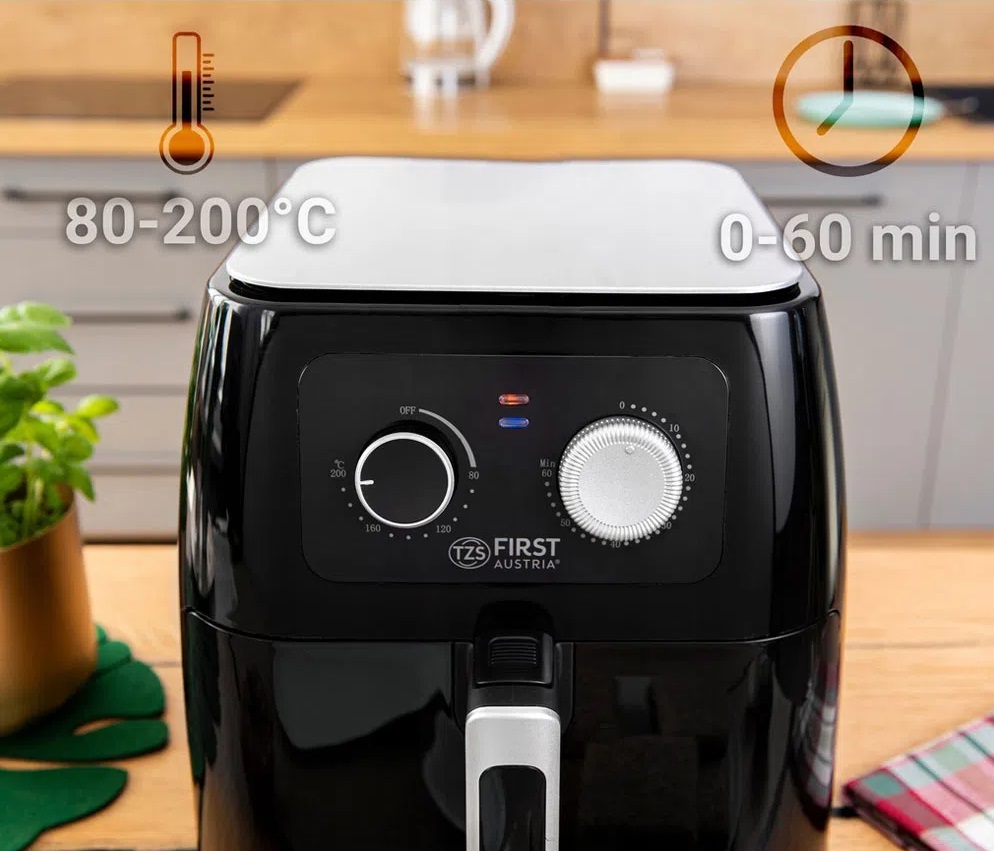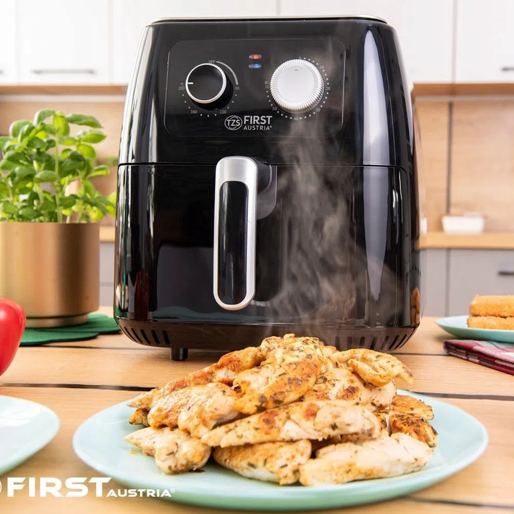 Στο παραδοσιακό τηγάνισμα με λάδι, προστίθενται πολλές θερμίδες, το φαγητό χάνει την υγρασία του και απορροφά το λίπος. Επιπλέον, λόγω της υψηλής θερμοκρασίας μαγειρέματος κατά τη διάρκεια του παραδοσιακού τηγανίσματος, τα trans λιπαρά που είναι επιβλαβή για το σώμα απελευθερώνονται. Η φριτέζα αέρος της First Austria θα σας βοηθήσει να ξεχάσετε όλα αυτά! Πείτε ναι στην υγιεινή διατροφή και αρχίστε να μαγειρεύετε τις αγαπημένες σας λιχουδιές για εσάς και την οικογένειά σας!