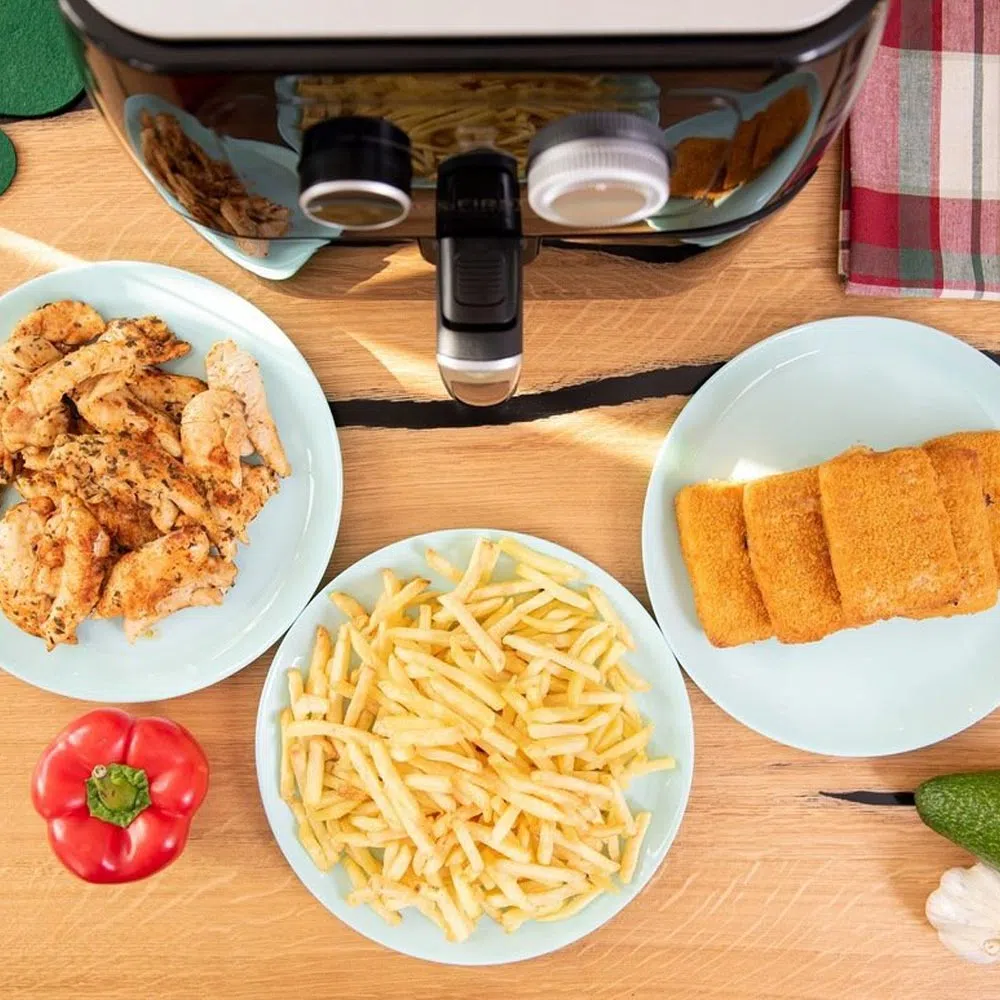 Με αυτήν τη μοντέρνα φριτέζα μπορείτε να μαγειρέψετε έως και 80% πιο υγιεινά! Το μυστικό είναι στην κυκλοφορία ζεστού αέρα, η οποία αυξάνει τη θερμοκρασία πολύ γρήγορα, και μπορεί να ρυθμιστεί εάν είναι απαραίτητο. Εάν αποφασίσετε να χρησιμοποιήσετε λάδι, το Air Fryer διαθέτει ειδικά διαμερίσματα στα οποία στραγγίζεται το λάδι και το αποτέλεσμα είναι ένα νόστιμο, τραγανό φαγητό παρασκευασμένο με λίγο ή καθόλου λίπος.