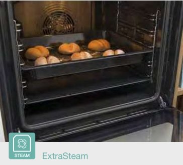 Αυτή η λειτουργία σας επιτρέπει να έχετε φαγητά τέλεια ψημένα στον ατμό ακόμα και αν ο φούρνος σας δεν διαθέτει ειδικό δοχείο νερού. Το μόνο που έχετε να κάνετε είναι να προσθέσετε λίγο νερό στο ρηχό ταψί του φούρνου, να επιλέξετε το σωστό πρόγραμμα ψησίματος και ο φούρνος θα κάνει τα υπόλοιπα.