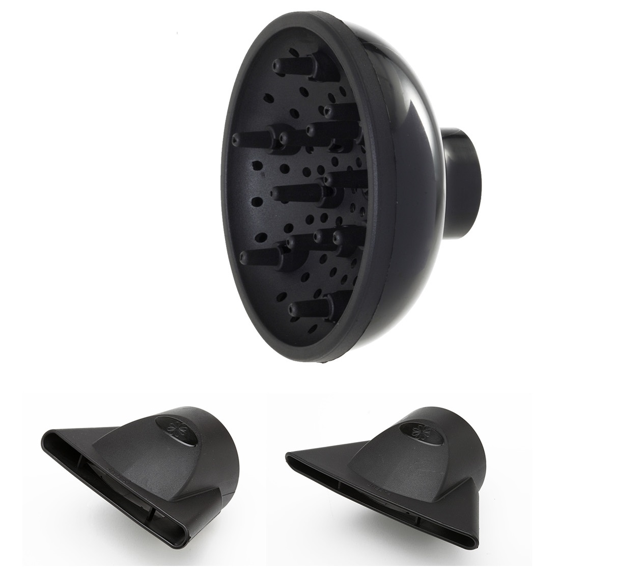 Διαθέτει δύο στόμια κατεύθυνσης αέρα επαγγελματικού τύπου για μεγάλη ακρίβεια. Στόμιο κατεύθυνσης αέρα ΟΑS (Over Air System) με πλάτος 75mm και στόμιο κατεύθυνσης αέρα ΟΑS PLUS με πλάτος 90mm ιδανικό για μακριά μαλλιά. Είναι κατασκευασμένα από ιδιαίτερα ανθεκτικό υλικό που να αντέχει σε υψηλές θερμοκρασίες. Στη συσκευασία περιλαμβάνεται και φυσούνα για περισσότερο όγκο, ελαστικότητα, μπούκλες και ανάλαφρο στυλ.