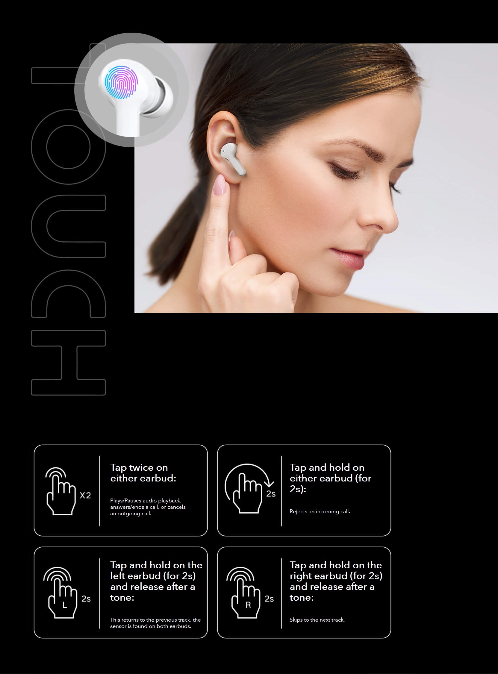 Τώρα έχετε πλήρη έλεγχο του τι ακούτε ακριβώς στα δάχτυλά σας, χάρη στον αισθητήρα απόκρισης αφής που βρίσκεται και στα δύο ακουστικά.