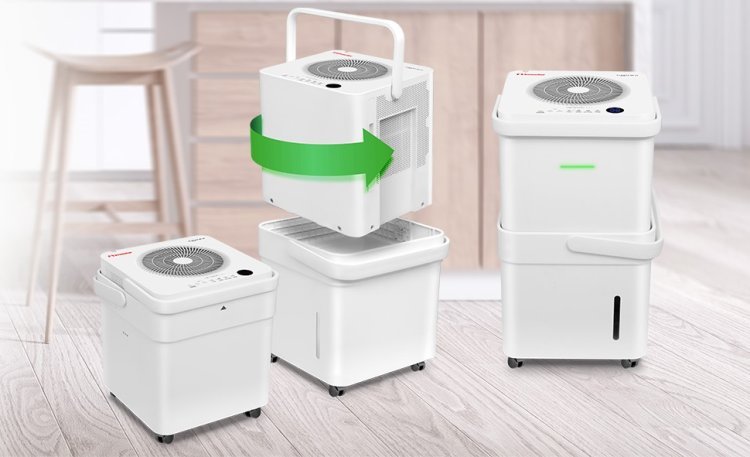 Έξυπνος σχεδιασμός με ασύγκριτη ευελιξία που προσαρμόζεται σε κάθε σας ανάγκη! Χάρη στον σχεδιασμό Pick up & turn, σηκώνετε, γυρίζετε και τοποθετείτε τον αφυγραντήρα στην ειδική υποδοχή, απολαμβάνοντας το μεγάλο δοχείο νερού 12 λίτρων. Ταυτόχρονα, μπορείτε να εξοικονομείτε χώρο τόσο όταν τον αποθηκεύετε μέσα στο δοχείο νερού όσο και κατά τη διάρκεια της συνεχούς αποστράγγισης.