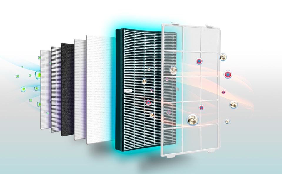 5ο στάδιο: HEPA φίλτρο. Το φίλτρο HEPA παγιδεύει επιβλαβή σωματίδια όπως βακτήρια, ιούς, αλλεργιογόνα, γύρη, σωματικές εκκρίσεις κατοικίδιων ζώων, ακάρεα σκόνης και καπνό τσιγάρου.