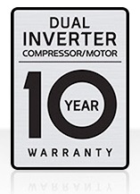 10 χρόνια εγγύηση για τον DUAL Inverter συμπιεστή και 10 χρόνια εγγύηση για το μοτέρ Inverter.