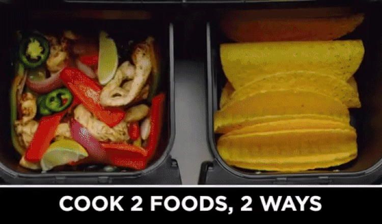 ► Η φριτέζα, διαθέτει 6 λειτουργίες μαγειρέματος: Max Crisp, Roast, Bake, Reheat, Dehydrate and Air Fry. Επιπλέον, διαθέτει 2 ανεξάρτητες ζώνες μαγειρέματος για εντυπωσιακά και γευστικά αποτελέσματα!