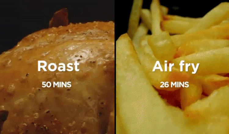 Έως και 75% λιγότερα λιπαρά από τις παραδοσιακές μεθόδους τηγανίσματος. Απόλαυσε τη γεύση τηγανιτού φαγητού χωρίς ενοχές χρησιμοποιώντας ελάχιστο έως καθόλου λάδι. Από νόστιμες φτερούγες κοτόπουλου, fish and chips, μπιφτέκια και λουκάνικα μέχρι νόστιμα fajitas, στικς γλυκοπατάτας και πατάτες τηγανιτές. Πώς λειτουργεί το τηγάνισμα στον αέρα; Ο εξαιρετικά ζεστός αέρας κυκλοφορεί ομοιόμορφα γύρω από το φαγητό για να αφαιρέσει την υπερβολική υγρασία και να του δώσει ένα υπέροχο χρυσό φινίρισμα. Τέλος, μπορείς να απολαύσεις το αγαπημένο σου ψητό όχι μόνο τις Κυριακές, αλλά οποιαδήποτε μέρα της εβδομάδας. Από ψητό κοτόπουλο, φιλέτα σολομού, χρυσαφένιο στήθος κοτόπουλου και ψητή χοιρινή μπριζόλα με τραγανή κρούστα μέχρι αφράτες ψητές πατάτες, ψητές ντομάτες με μπαλσάμικο και τσιπς γλυκοπατάτας.