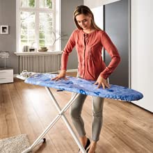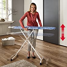 Κάντε το σιδέρωμα άνετο ρυθμίζοντας το ύψος της σιδερώστρας χρησιμοποιώντας το μοχλό. Η σιδερώστρα προσφέρει υθμιζόμενο ύψος 76cm έως το μέγιστο ύψος 100 cm.