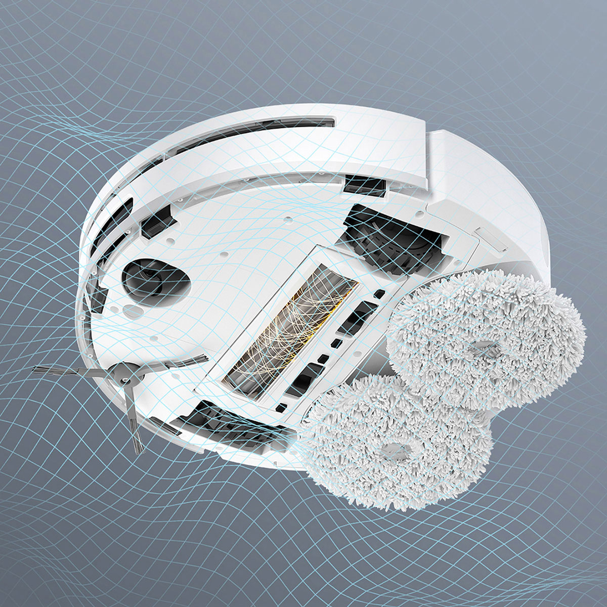 Η σκούπα ρομπότ, προφέρει την επιλογή για καλύτερα αποτελέσματα σφουγγαρίσματος, αφού διαθέτει ειδική boost λειτουργία για τους πιο επίμονους και στεγνούς λεκέδες χάρη στην ισχυρή πίεση που ασκεί στο δάπεδο των 10N, που αντιστοιχεί περίπου σε 1 κιλό. Μπορείτε να επιλέξετε τόσο την ένταση σφουγγαρίσματος όσο και το διάστημα πλυσίματος σφουγγαρίσματος ανάλογα με τον τύπο του δαπέδου και τον βαθμό λερώματος.