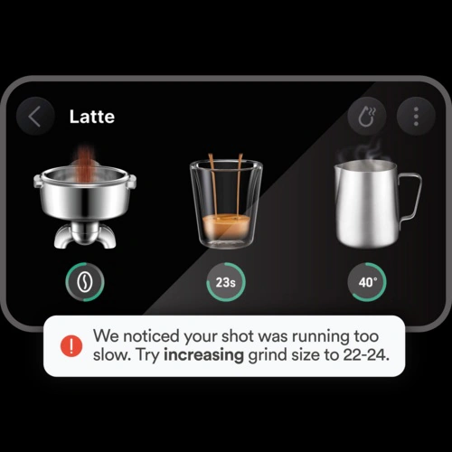 Με την αυτόματη ανίχνευση υπερβολικής ή ελλιπούς εκχύλισης εσπρέσο, το Barista Guidance σας βοηθά να προσαρμόσετε το μέγεθος του αλέσματος για να επιτύχετε την ιδανική ποσότητα.
