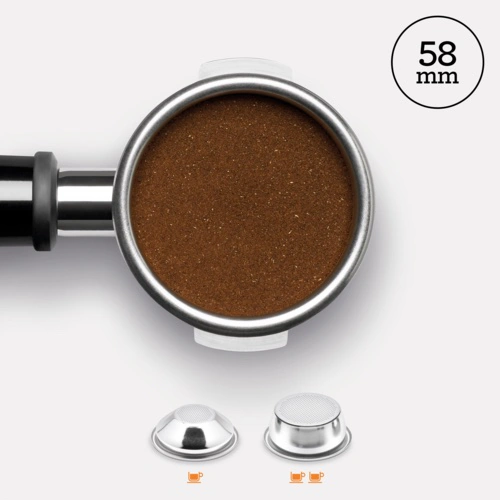 Ο πλούσιος και πολύπλοκος καφές δημιουργείται με την ιδανική δόση των 22 γρ. φρεσκοαλεσμένων κόκκων που παραδίδονται από ένα επαγγελματικού τύπου πορταφίλτρο 58 χιλιοστών από ανοξείδωτο ατσάλι.