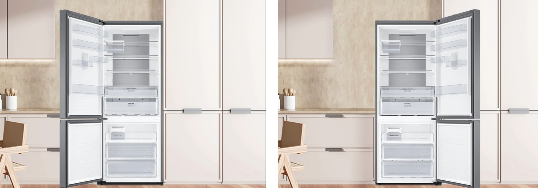 Επιλέξτε την κατεύθυνση προς την οποία ανοίγει ο καταψύκτης σας με την πόρτα με αλλαγή φοράς. Αυτό σημαίνει ότι θα αποτελεί πάντα κατάλληλη επιλογή για την διάταξη της κουζίνας που προτιμάτε. Η πόρτα μπορεί να αλλάξει φορά απλώς αλλάζοντας τους μεντεσέδες*. Έτσι, ταιριάζει σχεδόν παντού και σας προσφέρει την ευελιξία να συνδυάζετε μονάδες με διάφορους τρόπους.