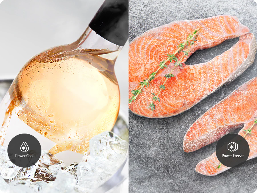 Απολαύστε ταχείες επιδόσεις ψύξης. Με το άγγιγμα ενός κουμπιού, το Power Cool διανέμει δυνατό κρύο αέρα στο εσωτερικό του ψυγείου για να ψύχει ταχύτατα τα λαχανικά ή τα αγαπημένα σας ποτά. Από την άλλη, το Power Freeze διανέμει πολύ δυνατό ψυχρό αέρα στον καταψύκτη. Είναι κατάλληλο για να καταψύχετε ή να σταθεροποιείτε τα παγωμένα τρόφιμα και να δημιουργείτε πάγο.