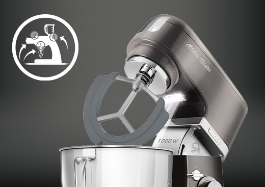 Η κουζινομηχανή STM 7870 GG μπορεί να έχει πολλούς ρόλους στην κουζίνα: ζυμώμα, κτυπημα, αλέσμα, ανακατεμα και πολλά άλλα. Χάρη σε αυτές τις λειτουργίες αντικαθιστά πολλές συσκευές της κουζίνας.