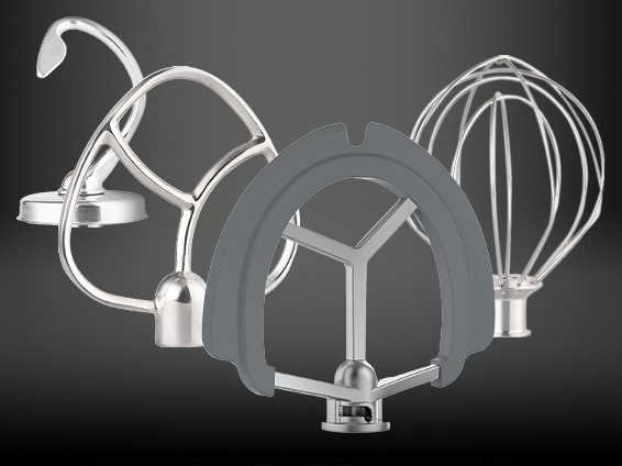 Λεπίδα ζύμωσης, αναδευτήρας σε σχήμα Α, χτυπητήρι σε σχήμα φούσκας και ειδικός αναδευτήρας ζύμωσης FLEXI, κατάλληλος για ελαφριές ζύμες.
